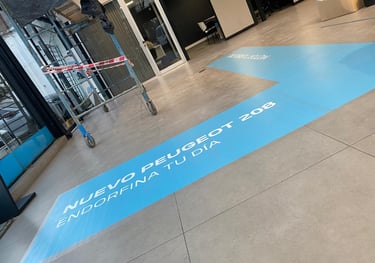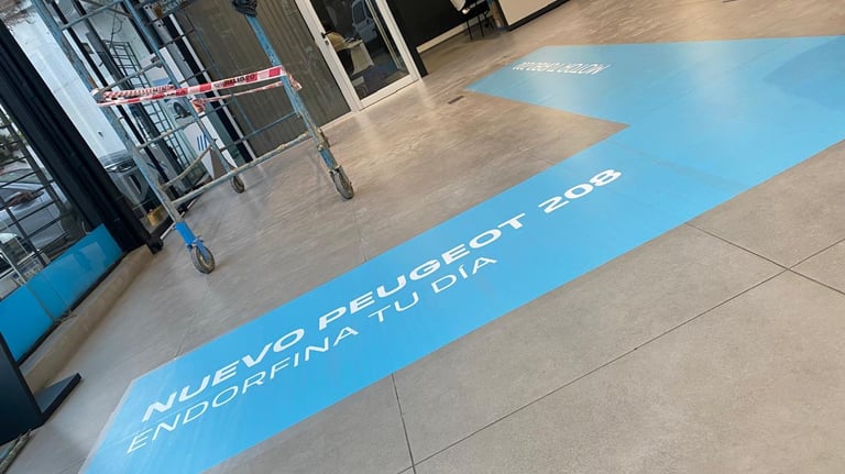 Gráficas adhesivas especiales para superficies de piso, fabricadas con materiales antideslizantes y resistentes al desgaste. Ideales para señalizar recorridos, comunicar promociones o reforzar marca.