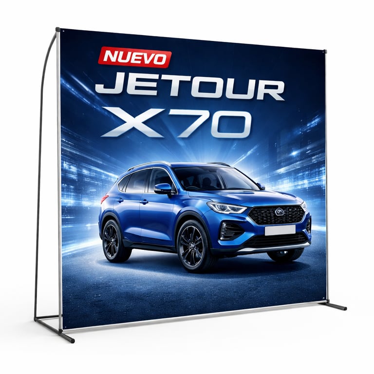 Estructuras de soporte para exhibir banners impresos en puntos de venta, eventos o espacios corporativos. Facilitan una presentación ordenada y profesional de la gráfica, son reutilizables, de rápido armado