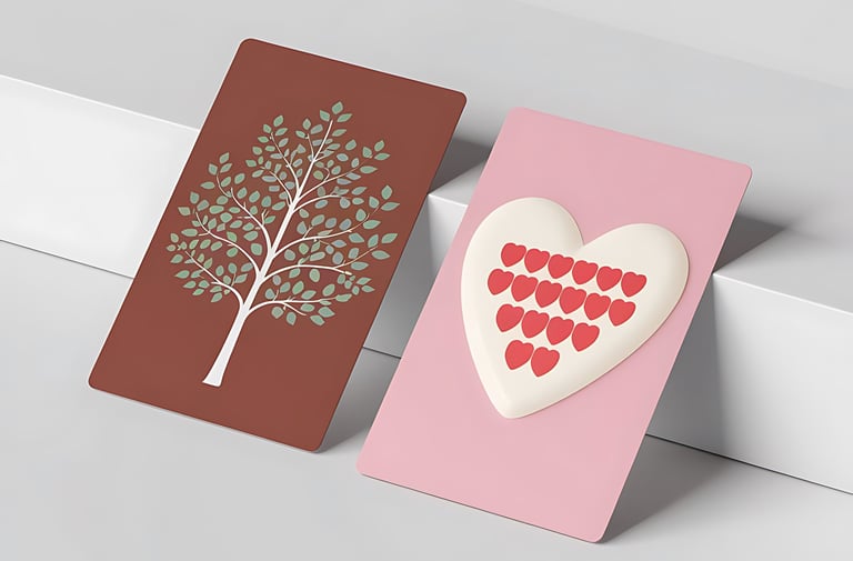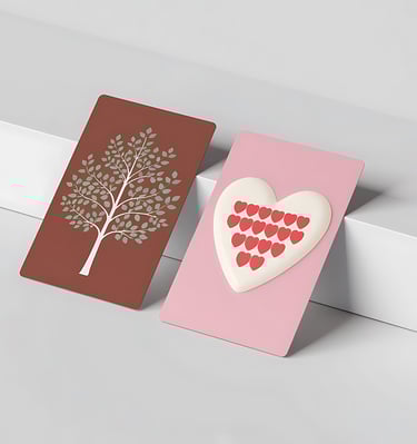 SE PERSONALIZAN CON FORMA, TAMAÑO Y TERMINACIONES A ELECCIÓN: LAMINADO MATE O BRILLANTE, RELIEVE, TROQUELADO Y PERFORACIÓN PARA CORDÓN O CINTA.