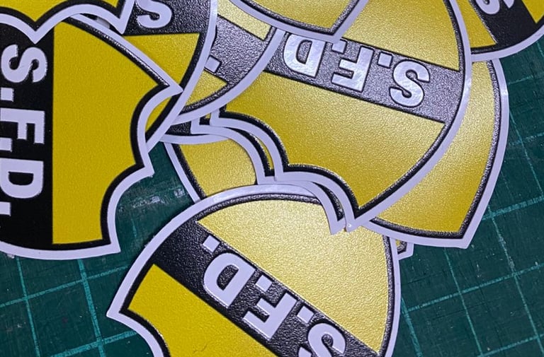 STICKERS SOBRE VINILO DORADO O PLATEADO